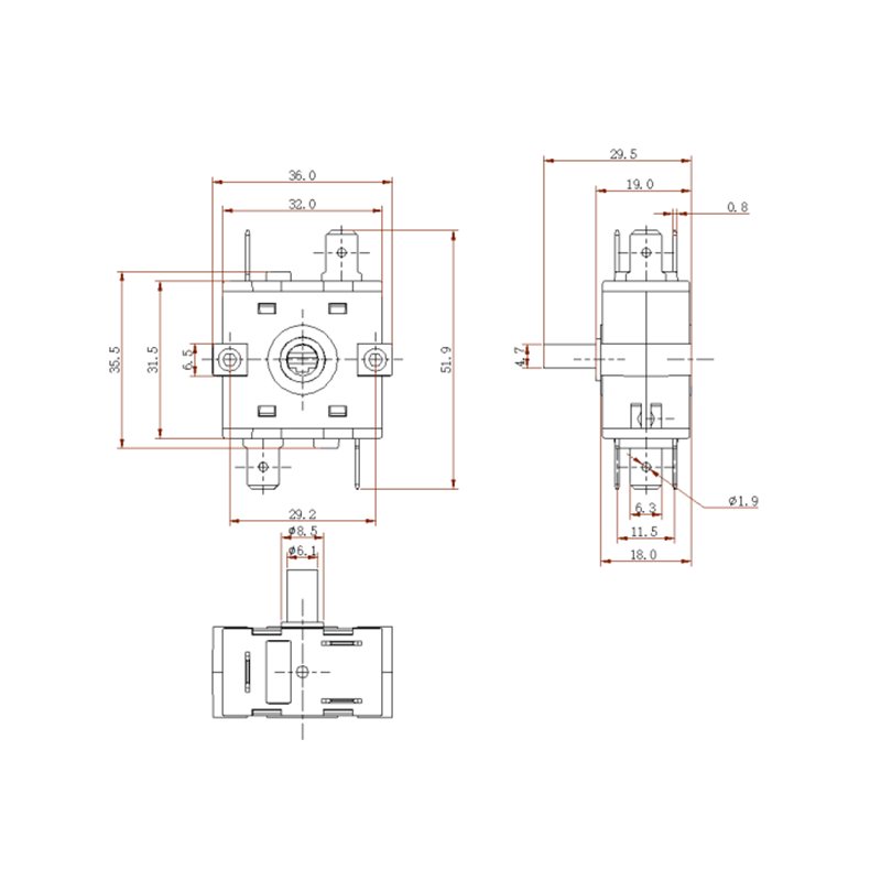 Prinsip Operasi: Sakelar bekerja dengan memutar kenop eksternal oleh pengguna, yang menggerakkan kontak rotor internal untuk terhubung secara berurutan dengan kontak stator tetap, sehingga mengalihkan status sirkuit dan memilih posisi fungsi. Desain ini memiliki fitur yang jelas Mekanisme Penahanan , memastikan luar biasa sensasi sentuhan dan umpan balik selama operasi.