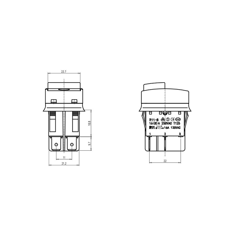 16(12)A 250VAC T125 1E4 IP55